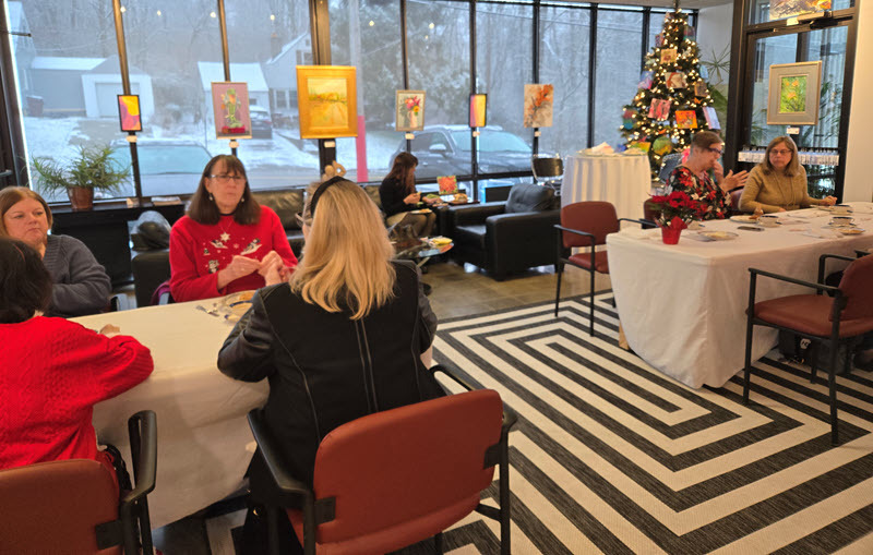 They also enjoyed browsing our "Small Works for Big Smiles" show on display. This holiday-themed exhibition delighted our guests who discovered original, one-of-a-kind pieces from talented Cincinnati artists, in a variety of small sizes and price points.